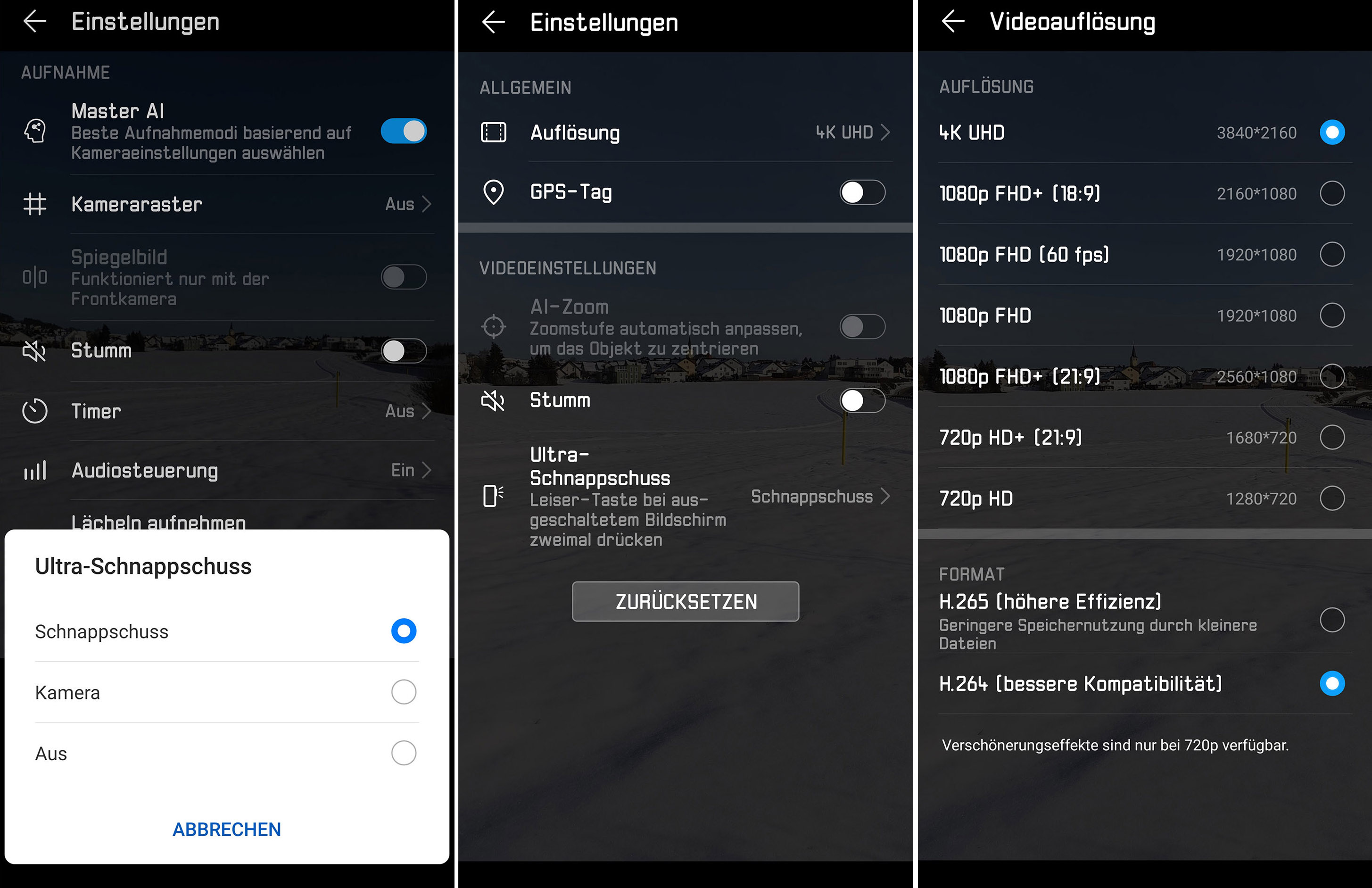 Weitere Aufnahme-Einstellungen der Kamera-App: