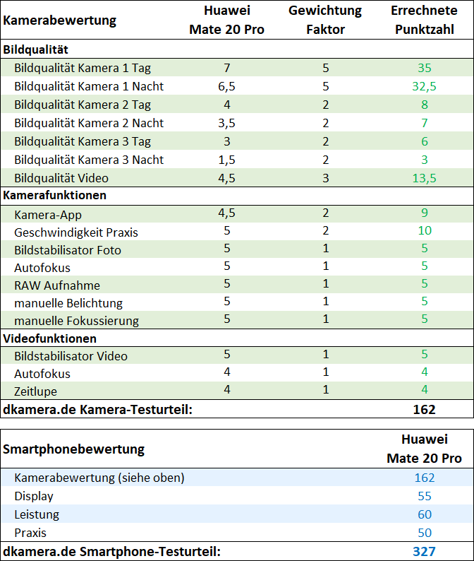 Huawei hat mit dem Mate 20 Pro ein Smartphone der Spitzenklasse im Angebot. Es kann fast bei jedem Bewertungskriterium ganz oben mitspielen. Die Verarbeitung des abgedichteten Gehäuses fällt exzellent aus, das OLED-Display punktet mit einer sehr hohen Auflösung, einer tollen Wiedergabequalität und sehr kleinen Rändern. Die Rechenleistung des Kirin-980-Prozessors lässt in Kombination mit 6GB RAM keine Wünsche offen. Dazu kommen ein (wenn auch vergleichsweise langsamer) Fingerabdrucksensor im Display, die Option des kabellosen Ladens und ein Stereo-Lautsprecher. Der große Akku ermöglicht lange Einsätze ohne Aufladen. Für kleinere Abzüge von der Bestnote sorgen der fehlende Klinkenausgang und der Nano-Memory-Slot. microSD-Karten sind günstiger und aktuell schlicht und ergreifend das Speichermedium Nummer 1.