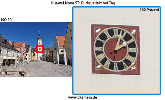 Grundsätzlich lässt sich für die kamerainterne Bildbearbeitung des Huawei Nova 5T sagen: sehr ordentlich. Die Bilder geben Farben korrekt wieder, der Kontrast und die Sättigung sind nicht zu stark übertrieben. Dass Smartphones tendenziell lebhafte Bilder liefern, trifft aber natürlich auch für das Nova 5T zu. Verbessern könnte Huawei die Abstimmung des Weißabgleichs zwischen den unterschiedlichen Kameras, hier gibt es durchaus Luft nach oben. Die AI-Funktion des Smartphones bringt im Regelfall trotz Szenenerkennung keine besseren Ergebnisse, das ist wegen der allgemein guten Leistung aber auch nicht notwendig.