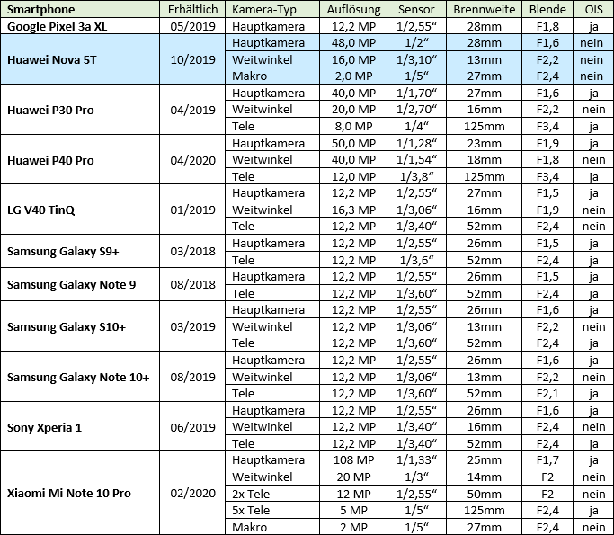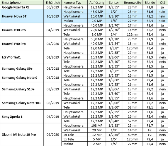 Prima recherchiert. Schon absolut klasse, was die neuen Huawei Smartphones und Modelle - und auch Xiaomi - an Kameraleistung in ihrem Preissegment bieten. Vielleicht könnte man das sogar als Alleinstellungsmerkmal im Vergleich zu anderen, deutschen Herstellern bezeichnen.
