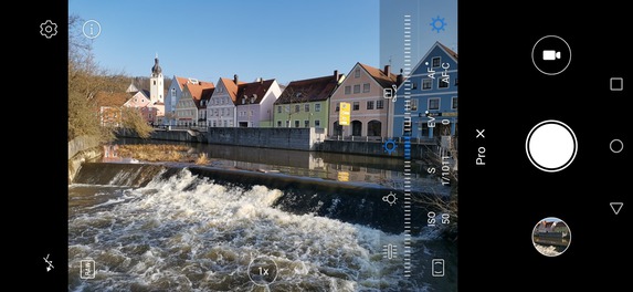 Wer manuell fokussieren und belichten möchte, ruft den „Pro-Modus“ auf. Hier können Fotografen auf folgende Parameter Einfluss nehmen: Belichtungsmessmethode (Mehrfeld, mittenbentont, Spot), Sensorempfindlichkeit (je nach Kamera max. ISO 50 bis ISO 102.400), Belichtungszeit (30 Sekunden bis 1/4.000 Sekunde), Belichtungskorrektur (+/- 4), Fokusmodus (AF-S, AF-C, MF) und Weißabgleich (unter anderem AWB, Kunstlicht und sonnig). Im Pro-Video-Modus der App lassen sich die genannten Parameter exklusive der Belichtungszeit und der Sensorempfindlichkeit verändern.