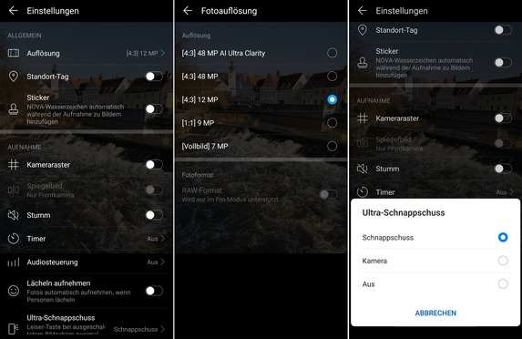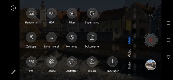 Dazu gehören beispielsweise ein Programm für Zeitlupen, eines für Panoramen oder eines für Makrofotos ("Supermakro"). Gut zu wissen: Die extra Makrokamera des Nova 5T ist nur über letzteres Programm zu erreichen.