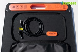 In der besagten Reißverschlusstasche befindet sich das Anschlusskabel, über das der Jackery Solargenerator 1000 (bei Amazon kaufen)* aufgeladen werden kann. Weiterhin befindet sich in der Tasche ein fest installierter USB-A sowie ein USB-C-Anschluss. Über diese beiden USB-Ports können Geräte wie beispielsweise Smartphones direkt und ohne der Notwendigkeit einer Powerstation aufgeladen werden.