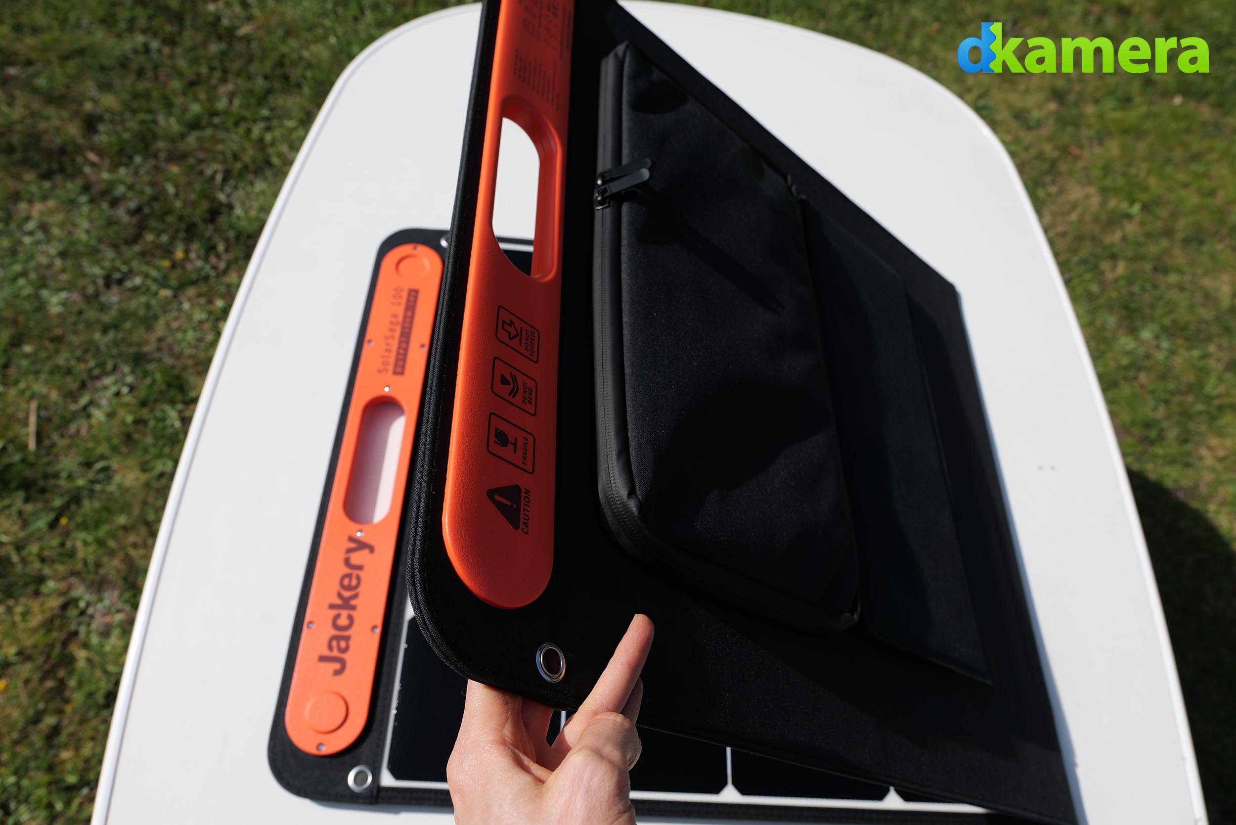Das Solarpanel ist natürlich nicht biegsam, es wird zum Transport jedoch in der Mitte zusammengeklappt und hat daher ein praktisches und kleines Packmaß.