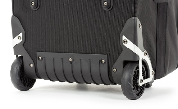 Beim Transport soll das Equipment hervorragend geschützt sein. Zu diesem Zweck kommen Kunststoffverstärkungen und Ballistic Nylon an den Außenseiten zum Einsatz, die weit auseinanderliegenden und stoßdämpfenden Rollen sollen auch den härtesten Bedingungen gewachsen sein.