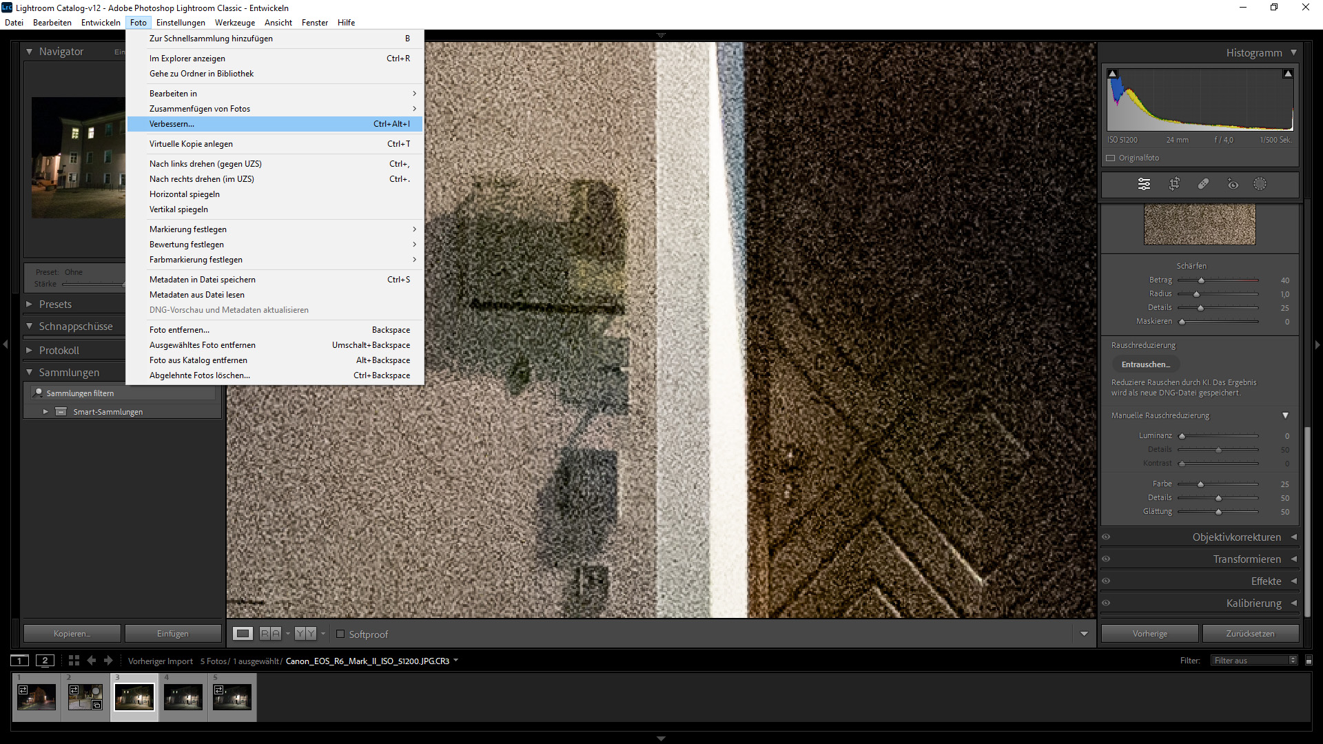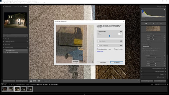 Bei stärkerem Bildrauschen reduziert die KI das Rauschen deutlich:
