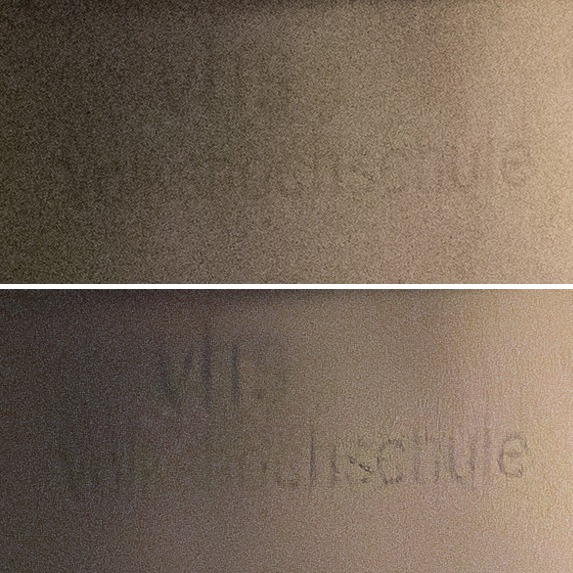 Zaubern kann aber auch die neue Entrauschungs-KI nicht: Sie erzeugt bei ihrer Arbeit leider auch eindeutige Fehler. Besonders gut lässt sich das bei stärkerem Bildrauschen sowie feinen Schriften erkennen. Diese fransen aus oder werden total verschwommen dargestellt. Das sorgt teilweise für unschöne Effekte.