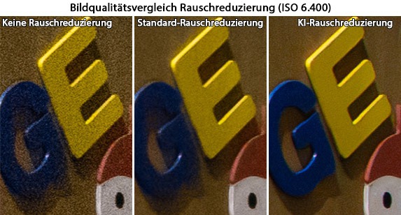 Bei geringerem Bildrauschen fällt der Abstand von der Standard- zur KI-Korrektur recht gering aus: