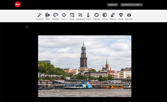 Die hochgeladenen Fotos lassen sich online außerdem auch bearbeiten. Neben der Möglichkeit die Belichtung und den Kontrast zu ändern, kann man die Aufnahmen beschneiden, die Farbtemperatur sowie auch die Größe ändern. Zudem ist es möglich, die Bilder mit verschiedenen Farbeffekten zu versehen und Teile einer Aufnahme weichzuzeichnen.