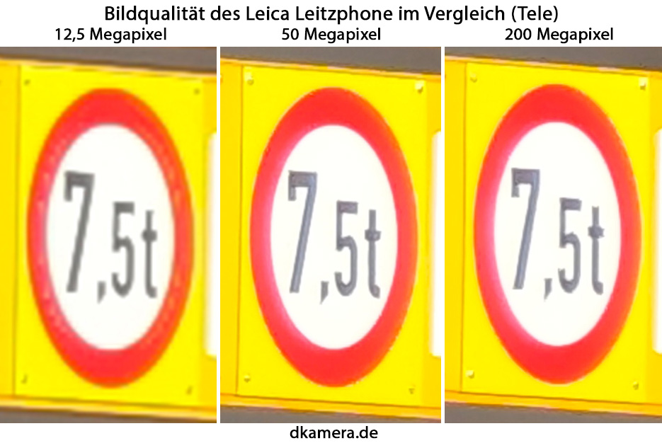 Bilder mit 200 Megapixel sind nur beim Einsatz der Telekamera möglich. Sie zeigen kaum mehr Details als Aufnahmen mit 50 Megapixel, wirken teilweise sogar etwas unschärfer und sind mit deutlichen Nachteilen verbunden. Zum einen ergibt sich zwischen zwei Bildern eine Wartezeit von rund zehn Sekunden, zum anderen sind Fotografen auf JPEG-Aufnahmen beschränkt. Bei manchen Bildern, die mit voller Auflösung aufgenommen wurden, zeigten sich zudem grundlos (= keine bewegungsbedingte Unschärfe oder durch eine zu geringe Schärfentiefe hervorgerufen) unscharfe Bildbereiche. Dieses Phänomen trat bei Bildern mit 12,5 Megapixel nicht auf. Daneben ergibt sich eine nicht zu verachtende Dateigröße von bis zu 70MB pro Bild. Bei 50 Megapixel sind es deutlich geringere 30MB und bei 12,5 Megapixel sogar nur 8 bis 10MB pro Bild.