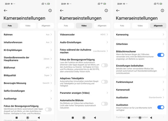 Bei Videos steht Nutzern eine riesige Palette an Aufnahmeoptionen zur Verfügung. Mit allen Kameras lässt sich unter anderem in 8K (30p) filmen. Dabei sind jedoch Nachteile wie ein deutlicher Rolling-Shutter-Effekt hinzunehmen. Wir würden uns im Alltag daher für 4K mit 60 Vollbildern pro Sekunde entscheiden. Hier erhält man hochqualitative Aufnahmen ohne Nachteile und kann auf Wunsch auch das Dolby-Vision-Format aktivieren. Zeitlupen lassen sich mit dem Smartphone in 4K (bis zu 120p mit der Hauptkamera) erstellen oder in Full-HD mit bis zu 1.920 Bildern pro Sekunde aufzeichnen. In Relation zur Bildrate ist die Qualität dabei überdurchschnittlich hoch. Sehr gut schneiden beim Leitzphone powered by Xiaomi zudem der Autofokus und die Bildstabilisierung ab.
