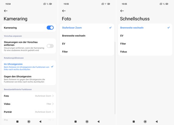 Weitere Modi lassen sich durch Wischen nach links (wenn man das Smartphone waagerecht hält) aufrufen. Dazu gehören unter anderem die Modi für Zeitlupen oder für Panoramen. Möchte man einen dieser Modi sofort aufrufen können, lässt sich dieser problemlos zur Schnellauswahlleiste hinzufügen. Andersherum geht dies natürlich ebenso.