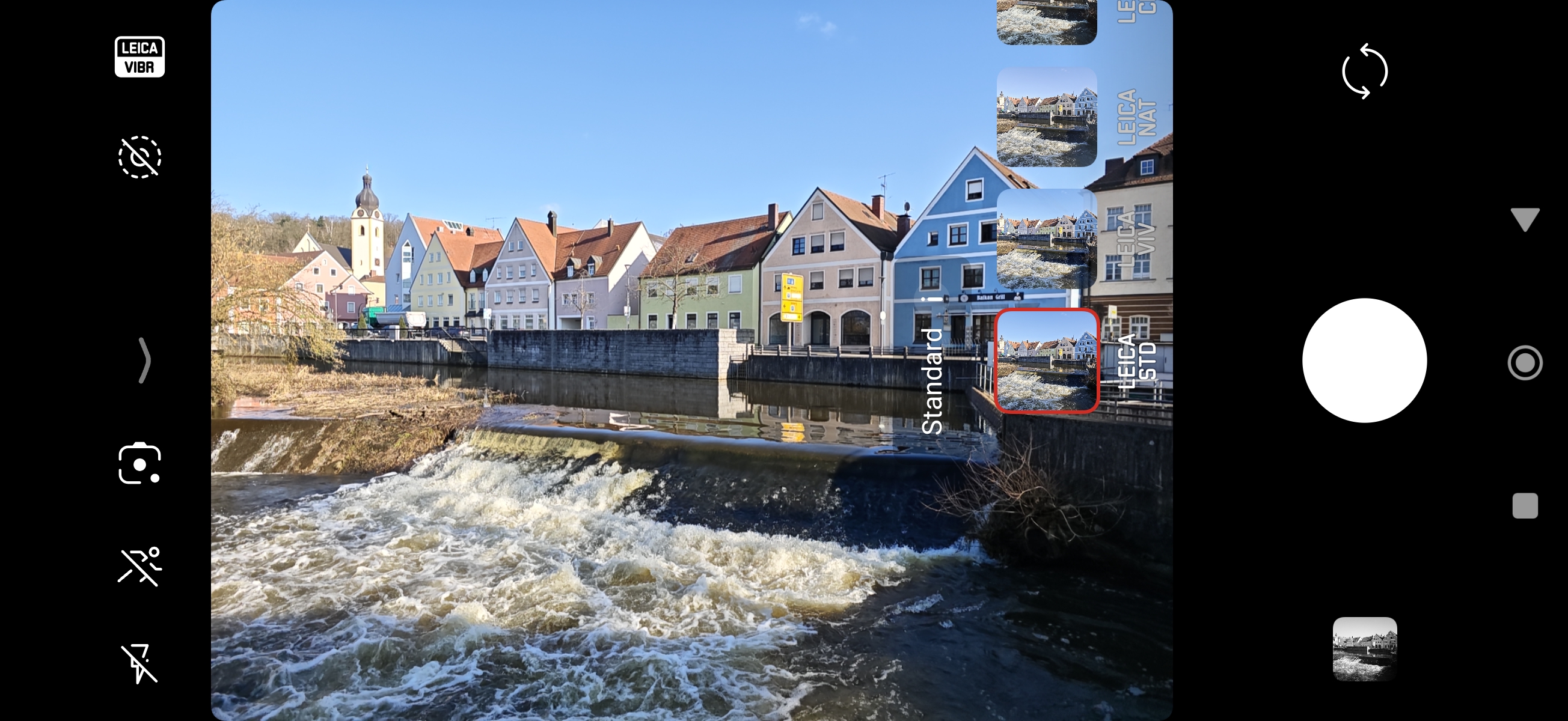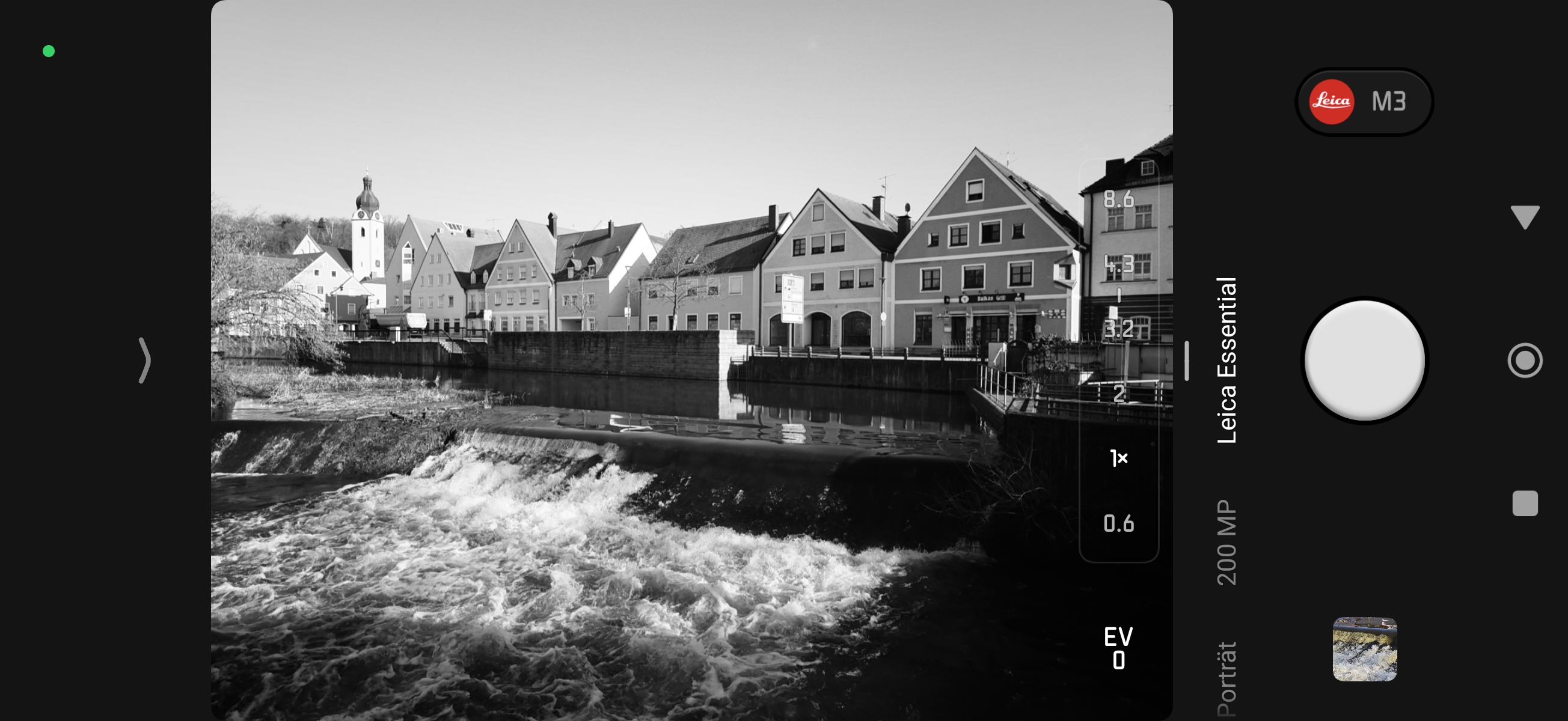 Mit dem Leica-Essential-Modus kann man den Bildlook der Leica M9 sowie der Leica M3 (mit Monopan-Filter) simulieren. Zu den weiteren Optionen gehören verschiedene Konfigurationsmöglichkeiten der Tasten sowie die Wahl der Startbrennweite der Hauptkamera (23mm, 28mm oder 35mm). Hier wird das Bild aber natürlich nur passend zugeschnitten. Um ein optisches Zoom handelt es sich schließlich nicht.