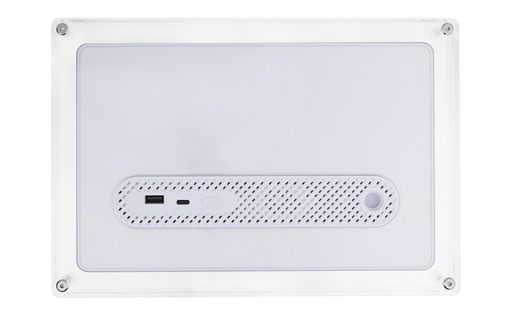 Auf der Rückseite befinden sich neben dem Lautsprecher auch zwei USB-Ports (Typ A und Typ C):
