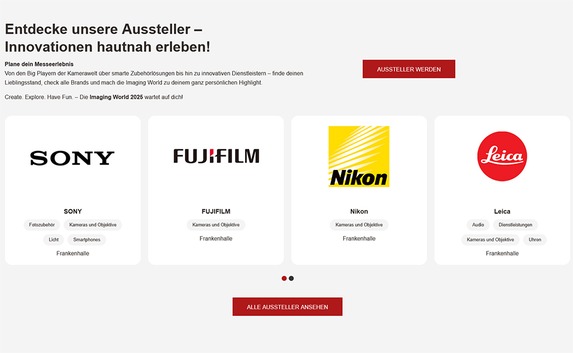 Fotomessen, die ein breites Publikum ansprechen, hatten es in der Vergangenheit nicht leicht. Wegen sinkender Nachfrage durch das Publikum sowie bedingt durch den Sparzwang der Unternehmen mussten in den letzten Jahren alle größeren Messen nach und nach die Segel streichen. Die Photokina gibt es seit 2018 nicht mehr, das Ende der Photopia wurde nach nur drei Ausgaben im Jahr 2024 bekanntgegeben und auch der Umfang der Photo+Adventure wurde zuletzt deutlich zusammengestrichen. Nun gibt es aber einen Lichtblick: die Imaging World wird im Oktober 2025 ihre Tore für Fachbesucher sowie Endkunden öffnen.