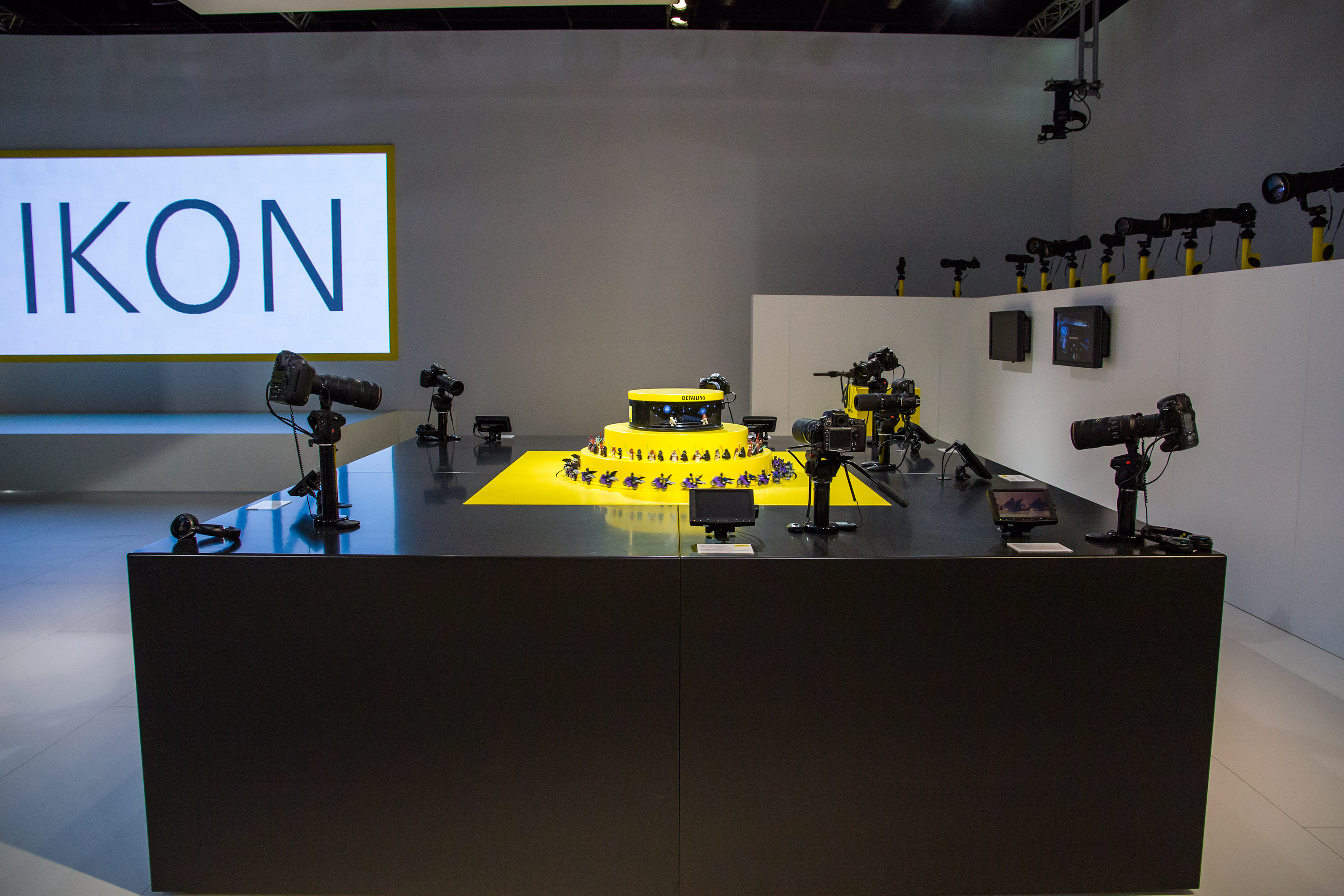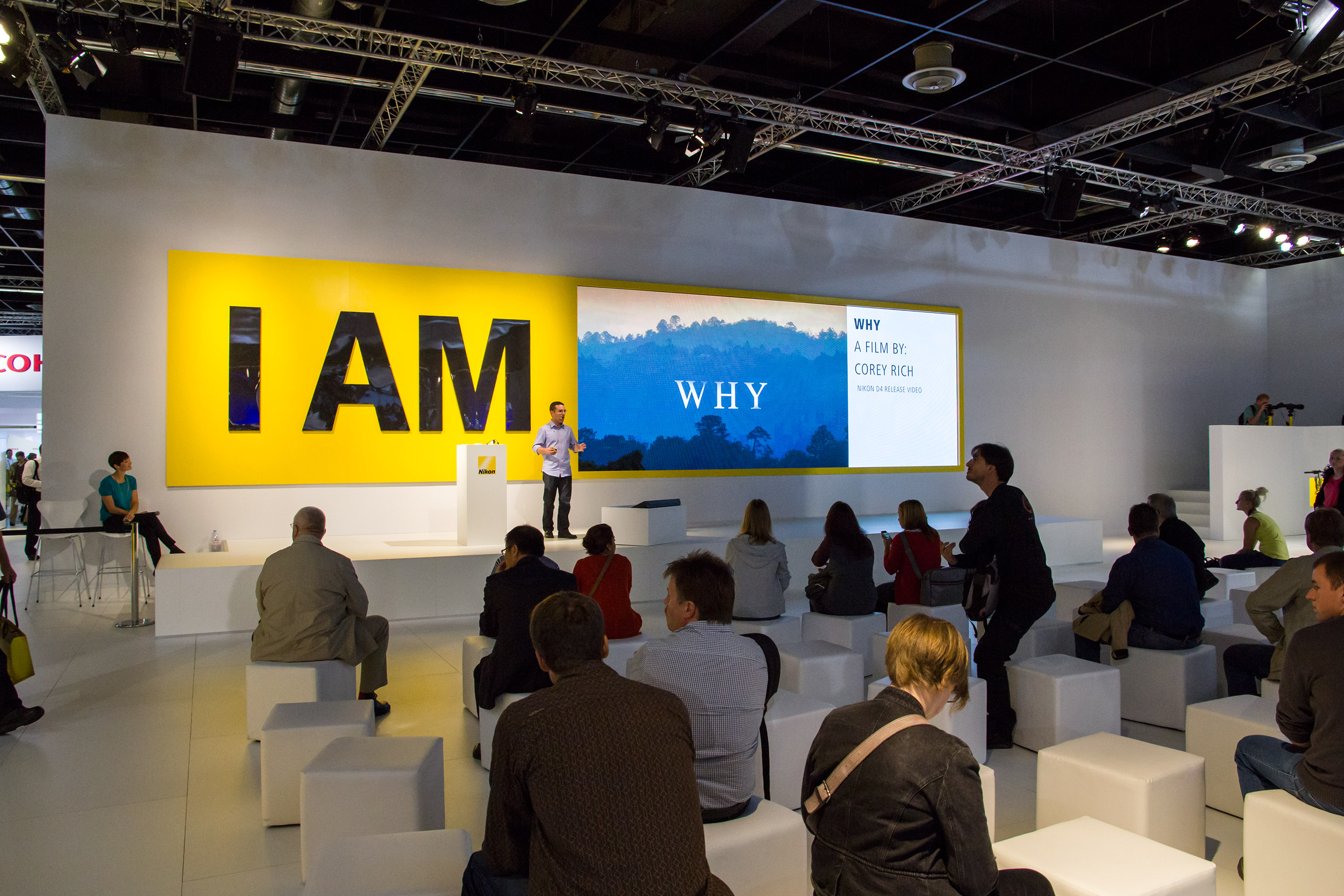 Neben den verschiedenen Kameramodellen hat der Nikon-Stand auch eine große Bühne mit zahlreichen Vorstellungen zu bieten. Etwa jede Stunde präsentieren verschiedene Fotografen und Filmemacher (darunter Jason Levine, Ursula Meissner und Carli Davidson) abwechselnd ihre – mit Nikon-Kameras aufgenommenen – Fotos oder Filme vor und erläutern unter anderem ihre Arbeitsweise.