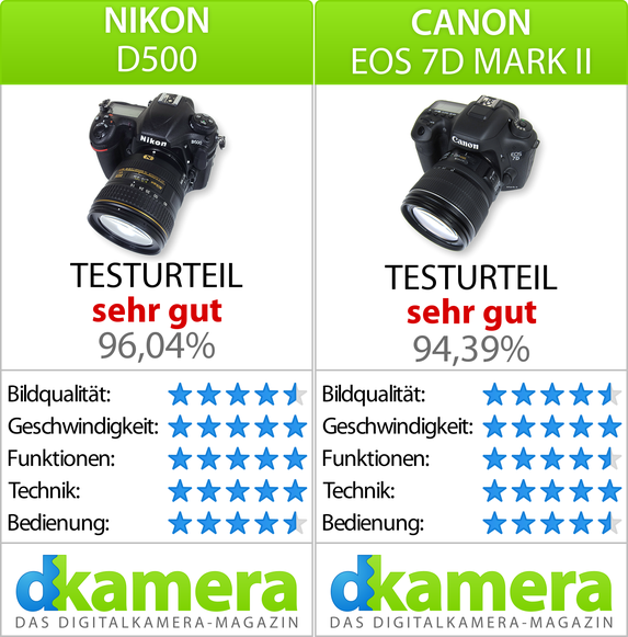 Am Ende können wir zusammenfassen: Die Nikon D500 ist aktuell (Stand: Juli 2016) die beste DSLR mit APS-C/DX-Sensor auf dem Markt und hat teilweise deutlich mehr als die 7D Mark II zu bieten. Die 7D Mark II ist zwar noch immer eine sehr gute Kamera, dass sie mittlerweile schon zu den älteren Modellen zählt, wird aber doch an mehreren Punkten sichtbar.
