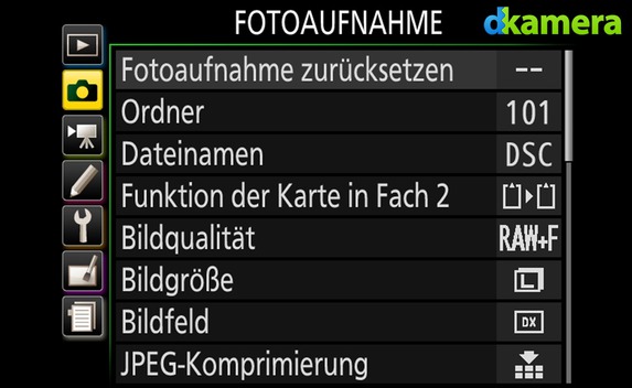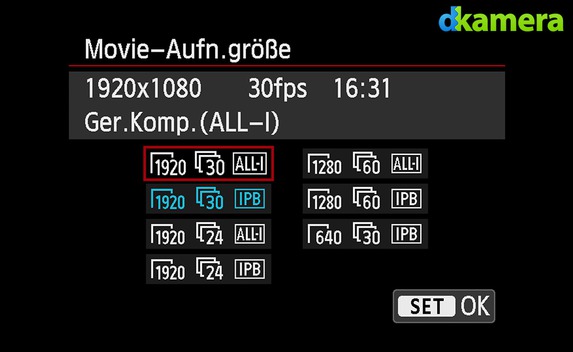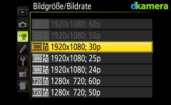 liegt mit 30 Vollbildern pro Sekunde hier gleich auf. Neben der Interframe-Codierung kann bei dieser aber auch die Intraframe-Codierung gewählt werden. Hier werden die Aufnahmen schwächer komprimiert, was bei schnellen Bewegungen im Bild für eine bessere Qualität sorgen kann. Die D7200 erlaubt keine Formatwahl, hier lässt sich die Komprimierung aber zwischen „Hohe Qualität“ und „Normal“ wählen.