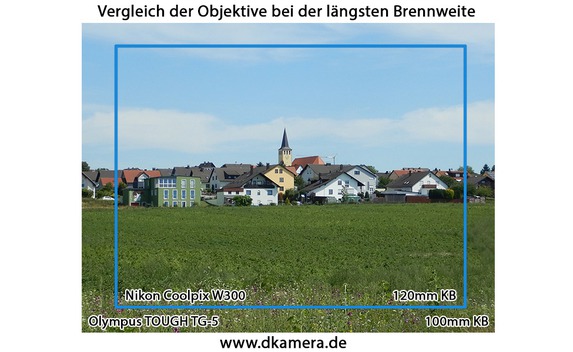 besitzt ein optisches 4-fach-Zoom mit einer kleinbildäquivalenten Brennweite von 25 bis 100mm, die Nikon Coolpix W300 ein 5-fach-Zoom mit 24 bis 120mm KB-Brennweite.