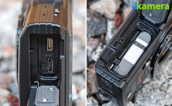 Schnittstellen sind bei Kompaktkameras mangels Platz in aller Regel wenige vorhanden. Bei Modellen der Outdoorklasse ist dies durch die benötigten Abdichtungen natürlich nicht besser. Beide Kameramodelle verfügen daher nur über einen USB- und einen HDMI-Port (jeweils in der Micro-Variante). Der Anschluss eines Blitzgerätes ist mangels Zubehörschuh nicht möglich, mit den integrierten Blitzen lassen sich jedoch nähere Motive aufhellen.