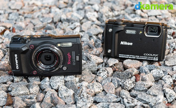 Die beiden Outdoorkameras in diesem Vergleich sind Modelle für Einsätze in für Kameras nicht optimalen Umgebungsbedingungen: bei Regen oder auch am Strand. Und es geht sogar noch mehr: Sie lassen sich selbst unter Wasser verwenden und überstehen Stürze aus bis zu 2,4m Höhe. Die Gehäuse werden in beiden Fällen aus Kunststoff gefertigt (bei der Coolpix W300 ist immerhin die Vorderseite aus Metall), sind aber trotzdem recht robust gebaut. In der Hand liegen sie akzeptabel, der Einsatz von einer oder mehreren Gummierungen wäre trotzdem durchaus sinnvoll gewesen. Hinsichtlich der Bedienelemente ergibt sich ein abweichendes Bild: Die TG-5 besitzt als Vorteil zwei Einstellräder, ihre Tasten sind aber besonders klein und zum Beispiel mit Handschuhen schwer zu drücken. Die Coolpix W300 von Nikon macht das besser: Hier gibt es (mit Ausnahme der Wippe zum Verändern der Brennweite) zwar nur Tasten, diese fallen aber größer aus. Punkten kann die Kamera außerdem mit einem Menü, das sich per Tippen gegen das Gehäuse bedienen lässt.