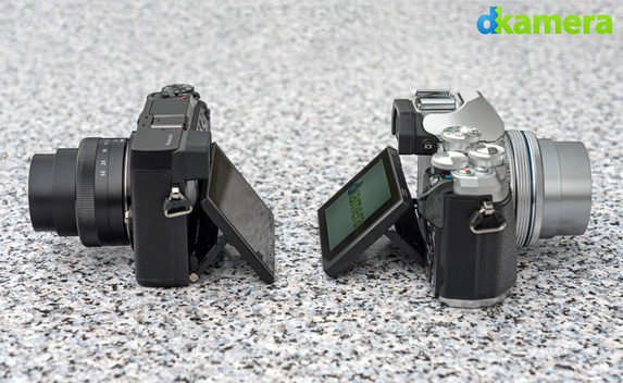 Der Sucher der GX80 ist höher aufgelöst und liefert das schärfere Sucherbild, lässt sich jedoch auch schlechter einsehen, und bei schnellen Bewegungen des Auges wird ein Regenbogeneffekt sichtbar. Die Displays mit hohen Auflösungen sind in der Praxis gut zur Bildkontrolle geeignet. Sie sind schwenk-, aber nicht drehbar. Touchoberflächen sind jeweils vorhanden, nur bei der GX80 funktioniert der Touchscreen fast in jeder Situation.