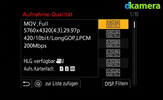 Die Lumix DC-G9II unterstützt Video-Aufnahmen mit voller Sensorauflösung:
