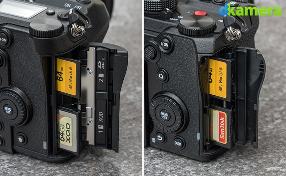 Bilder und Videos legt die Panasonic Lumix DC-S1 auf einer SD- und einer CFexpress/XQD-Karte ab, die Panasonic Lumix DC-S5 besitzt zwei SD-Slots. SD-Karten sind günstiger als CFexpress- bzw. XQD-Modelle, in der Spitze aber nicht ganz so schnell. Bei unserem Test von XQD-Karten fielen die Geschwindigkeitsvorteile allerdings minimal aus. Von Vorteil ist bei der S1 dagegen, dass sie über zwei „schnelle“ Slots verfügt. Besitzer der S5 müssen mit einem schnellen UHS-II-fähigen SD-Slot und einem langsameren UHS-I-Slot auskommen. Als tragisch stufen wir den UHS-I-Slot der S5 nicht ein, ein zweiter schneller Slot wäre jedoch schön gewesen.
