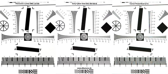 Bei der Bildqualität kann sie sich trotz des größeren Bildsensors allerdings nicht von der Sony Cyber-shot DSC-RX100 III absetzen, bei stärkeren Vergrößerungen liegt sie durch ihre geringere Auflösung sogar hinter dieser. Nicht ganz auf diesem hohen Niveau bewegt sich die Canon PowerShot G7 X. Im Vergleich zum Kompaktkamera-Durchschnitt ist das Ergebnis aber immer noch deutlich besser.