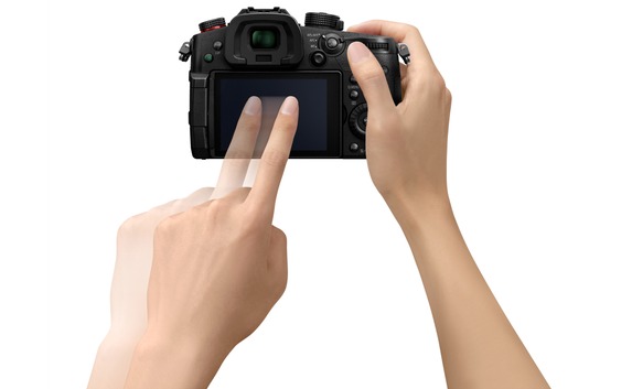 Die Bildkontrolle kann per OLED-Sucher mit 3,68 Millionen Bildpunkten, einer 0,76-fachen Vergrößerung und 120 Bildern pro Sekunde erfolgen (GH5: 60 Bilder/Sekunde). Das 3,2 Zoll große, dreh- und schwenkbare Display löst 1,62 Millionen Subpixel auf und verfügt über eine Touchoberfläche.