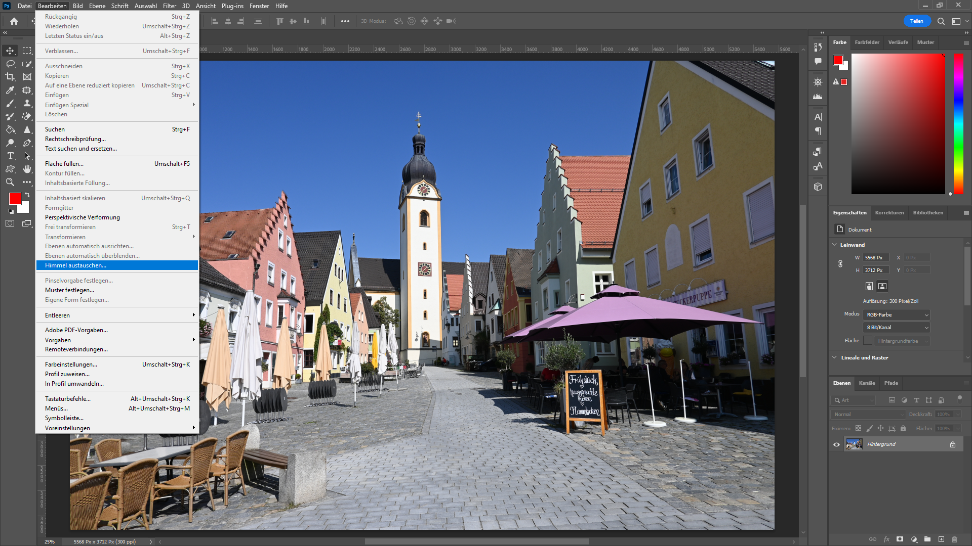 Das "Himmel austauschen"-Werkzeug findet sich unter "Bearbeiten":