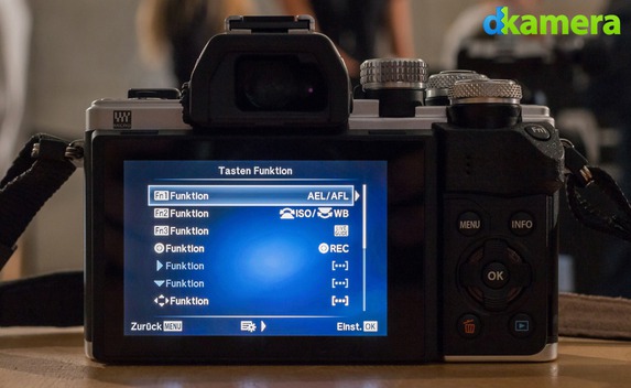 Ein dritte Fn-Taste (Fn1 genannt) ist zudem auf der Rückseite in einer leicht schrägen Position zu finden. Diese ist für die Bedienung per Daumen gedacht. Des Weiteren ist es bei der spiegellosen Systemkamera möglich, das rückseitige Steuerkreuz zu konfigurieren. Die E-M10 Mark II lässt sich dadurch in sehr vielen Punkten an die eigenen Wünsche anpassen.