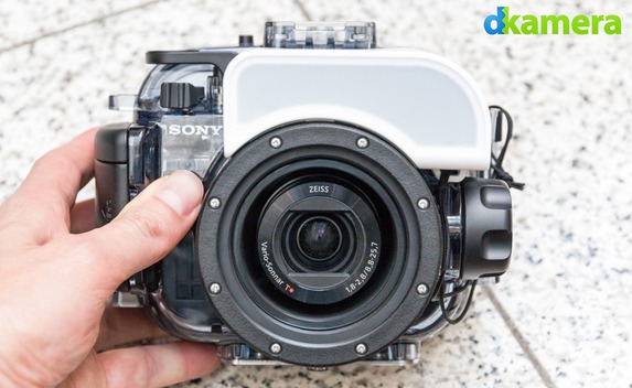 Als neues Zubehör bietet Sony für die RX100 V (sowie die anderen RX100-Modelle) ein Unterwassergehäuse mit dem Namen MPK-URX100A an. Auch darauf konnten wir schon einen ersten Blick werfen. Im Gehäuse befand sich zum Testzeitpunkt zwar eine Sony Cyber-shot DSC-RX100 III, diese wird aber genauso wie die RX100 V bedient. Das offiziell bis 40m Tauchtiefe freigegebene Unterwassergehäuse fällt in etwa so groß wie eine Spiegelreflexkamera aus und erlaubt das Bedienen aller Tasten und Einstellräder.