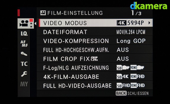 Von den 4K-Aufnahmen gibt es mit Ausnahme des neuen Farbprofils „Eterna Belach Bypass“ keine Neuerungen zu berichten. Diese waren aber auch nicht notwendig. Mit bis zu 60 Vollbildern pro Sekunde in 4K, der F-Log-Aufnahme und besonders hohen Datenraten (max. 400Mbit/s) fällt das Ausstattungspaket hervorragend aus.