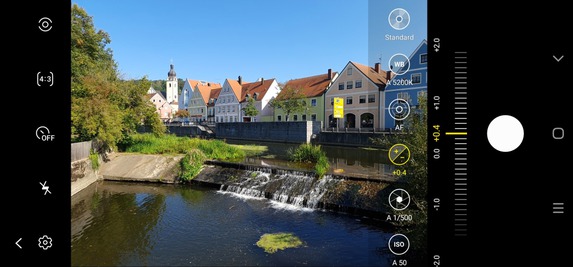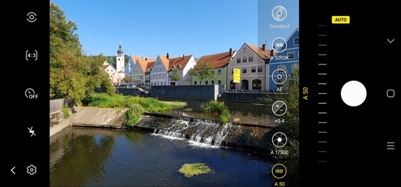 Die Aufnahmeprogramme sind beim Galaxy Note 20 Ultra entweder direkt zu erreichen oder werden über die Option „Mehr“ aufgerufen. Zu den Aufnahmemodi gehören unter anderem ein „Single Take“-Modus (dieser erstellt automatisch mehrere Fotos und Videos einer Szene), ein herkömmlicher Foto- und Video-Modus sowie ein PRO-Modus. Beim PRO-Modus können Fotografen die wichtigsten Aufnahmeparameter beeinflussen. Dazu gehören die Belichtungskorrektur, der Weißabgleich, der Fokusmodus, der Bildstil, die Belichtungszeit und die Sensorempfindlichkeit. Leider steht im PRO-Modus nur die Hauptkamera zur Verfügung, die anderen Kameras lassen sich nicht verwenden. Das finden wir schade.