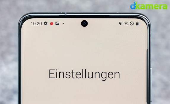 Die Frontkamera liegt mitten im Display und fällt nur geringfügig auf: