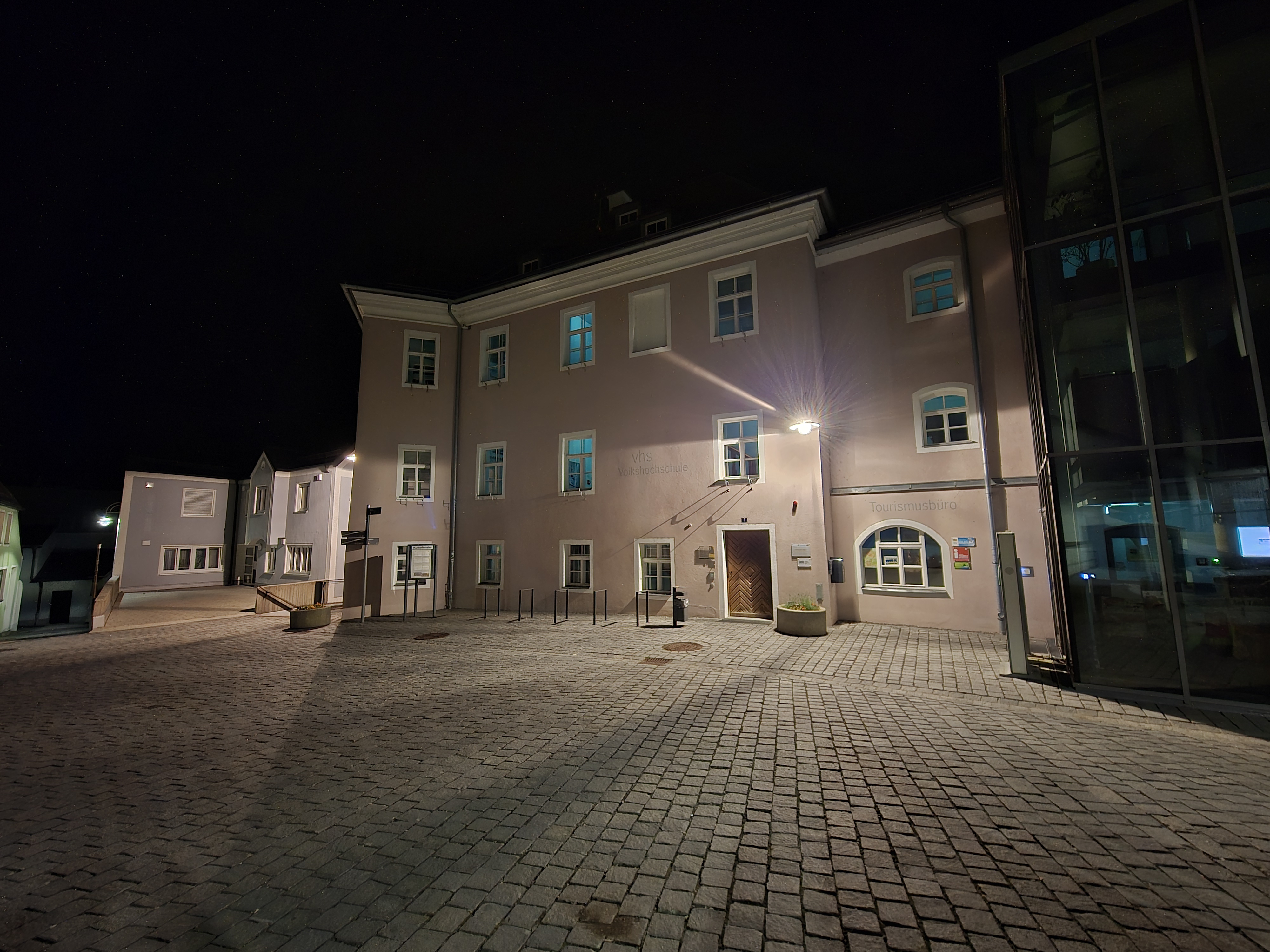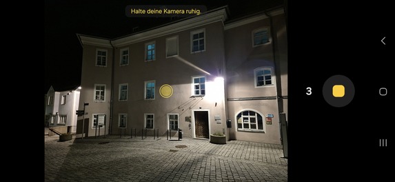 Bei weniger Licht (bzw. bei Nacht) zeigt sich das von vielen Smartphones bekannte Bild. Die Aufnahmen der Hauptkamera fallen qualitativ vergleichsweise wenig ab, die Aufnahmen der andere beiden Kameras zeigen jedoch wesentlich mehr Bildrauschen. Das liegt vor allem an den unterschiedlich großen Sensoren. Mit der Hauptkamera lassen sich auch bei wenig Licht gute Bilder speichern, der Einsatz des Nachtmodus ist nicht immer unbedingt vonnöten. Die Bildqualität kann er allerdings verbessern – wenn 12 Megapixel auflösende Bilder ausreichen. Bilder mit voller Auflösung sind leider nur abseits des Nachtmodus möglich.