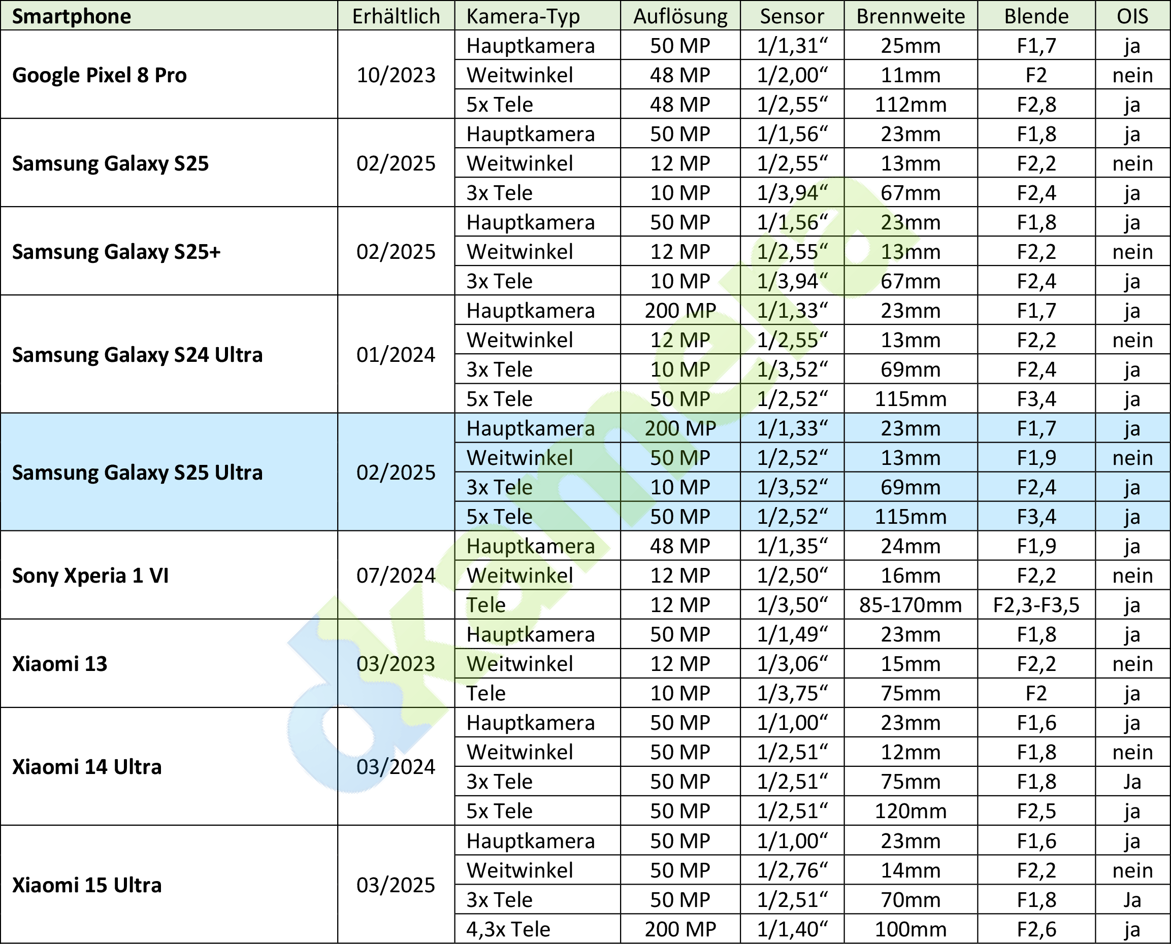 Die Kamera-Ausstattung der Galaxy-S-Smartphones hat sich in den letzten Jahren nicht gewaltig verändert. Das Ultra-Modell ist auf der Rückseite seit Längerem mit vier Kameras ausgestattet, die anderen Modelle bringen drei Kameras mit. Für die diesjährige S25-Serie gilt das ebenso. Während früher neben den 3-fach-Telekameras auch die Ultraweitwinkelkameras identisch waren, ist dies 2025 jedoch anders. Hier nutzt Samsung beim Galaxy S25 Ultra ein neues Modell.