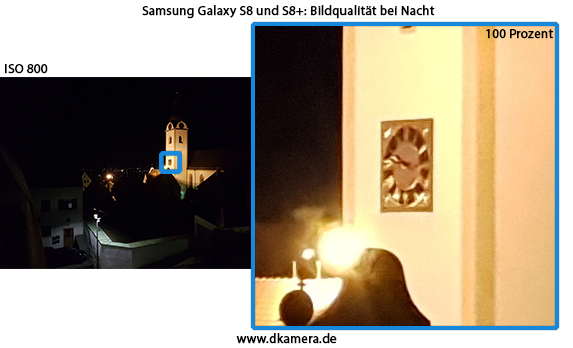 Beim Test der Bildqualität bei schlechten Lichtverhältnissen fällt auf, dass Samsung auf eine starke Rauschreduzierung setzt. Die Aufnahmen zeigen dadurch zwar nur ein geringes Bildrauschen, die Weichzeichnung sorgt aber auch für einen sichtbaren Detailverlust. Dieser hält sich bei ISO 400 noch in Grenzen, bei ISO 800 ist er deutlich zu sehen. Noch höhere ISO-Werte unterbindet Samsung im Pro-Modus leider, weshalb wir sehr hohe ISO-Werte mit anderen Kameras nicht vergleichen können. Grundsätzlich würden wir sagen, dass Samsung eine für den „Normal-User“ sinnvolle Abstimmung (weniger Rauschen, dafür eine stärkere Weichzeichnung) getroffen hat. Wer noch mehr aus den Bildern herausholen will, sollte unbedingt zu den RAW-Dateien greifen. Diese zeigen sichtbar mehr Details und lassen sich mit etwas Bildbearbeitungskenntnissen vor allem bei schlechten Lichtverhältnissen zu deutlich detailreicheren Aufnahmen verwandeln.