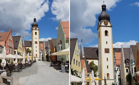 Die Telekamera des Samsung Galaxy S9+ löst genauso hoch wie die Hauptkamera auf, die Aufnahmen können mit dieser trotzdem nicht mithalten. Dies liegt am kleineren Sensor und der lichtschwächeren Blendenöffnung. Bei Tag sind die Unterschiede noch nicht allzu groß, aber schon sichtbar. Trotzdem gilt: Fotos der Telekamera sind wesentlich detailreicher als die vergrößerten Aufnahmen der Hauptkamera. Bei Nacht rauschen die Fotos der Telekamera deutlich stärker. Dies weiß auch Samsung, in sehr dunklen Situationen wird statt auf die Telekamera sogar auf die Hauptkamera und zwecks Vergrößerung auf einen digitalen Zoom zurückgegriffen. Der Fotograf bekommt davon in der Regel allerdings nichts mit, der Wechsel bleibt in vielen Situationen unbemerkt. Dies gilt wie gesagt für den Automatikmodus, nur hier kann sich der Fotograf für eine längere Brennweite entscheiden. Die Automatik des Samsung Galaxy S9+ arbeitet in den allermeisten Situationen gut. Die HDR-Aufnahme hilft oftmals, den Dynamikumfang wesentlich zu vergrößern. Bei manchen Motiven wirken die Fotos dadurch aber teilweise schon etwas unnatürlich.