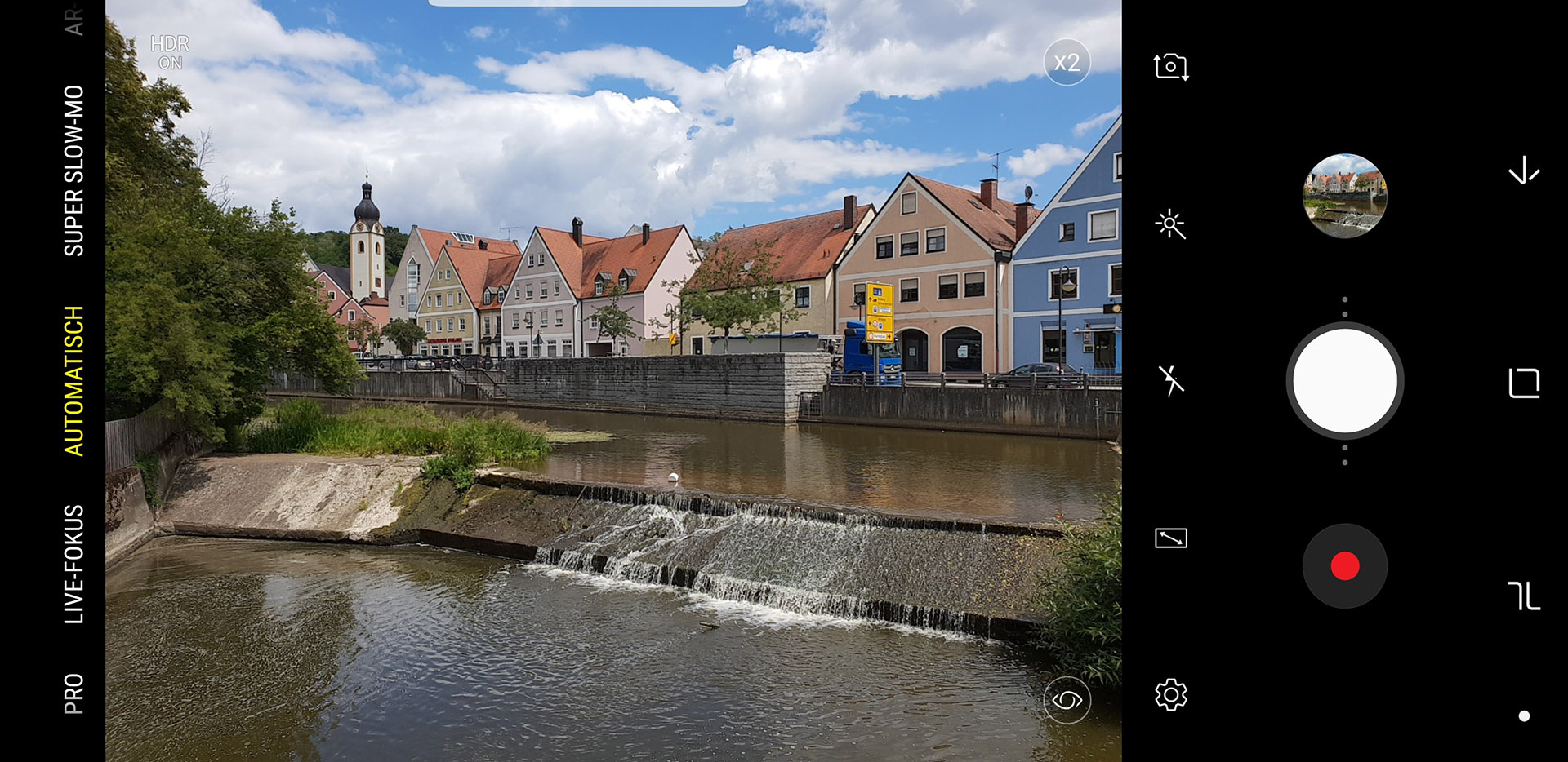 Für Aufnahmen mit unscharfem Hintergrund hat das S9 einen Live-Fokusmodus zu bieten. Hier lässt sich der Grad der Unschärfe per Slider wählen und noch vor der Aufnahme prüfen. Im Praxistest arbeitete diese Funktion weitgehend gut, bei genauem Hinsehen fällt aber doch auf, dass Übergänge nicht immer optimal erkannt werden. Zu den weiteren Spezialmodi gehören eine Hyperlapse-Funktion für Zeitraffer und der AR-Emoji-Modus zum Aufnehmen animierter Emojis.