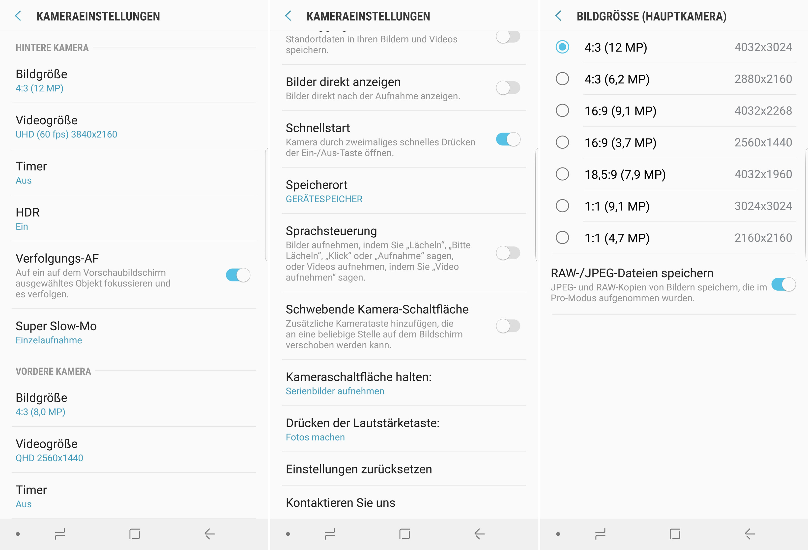 Dies gilt jedoch für beide S9-Geräte. Absetzen kann sich das S9+ vor allem durch seine zweite Kamera auf der Rückseite, mit der sich Motive dank einer doppelt so langen Brennweite besser vergrößern bzw. näher heranholen lassen. Wer das S9 als Kameraersatz nutzen möchte, profitiert davon zweifellos. Die zweite Kamera erlaubt allerdings keine Aufnahme von RAW-Bildern und die manuelle Belichtung ist bei deren Einsatz ebenso nicht möglich. Bei der Hauptkamera stehen alle Optionen zur Verfügung, hier lässt sich aus einer riesigen Liste von Funktionen wählen. Zu den besten Features des S9+ gehören der jederzeit schnelle Autofokus, die sehr effektiv arbeitende optische Stabilisierung und das lichtstarke Objektiv (F1,5). Die variable Blende zählt sicherlich auch zu den Pluspunkten, hätte mit mehr Blendenstufen aber noch konsequenter umgesetzt werden müssen.