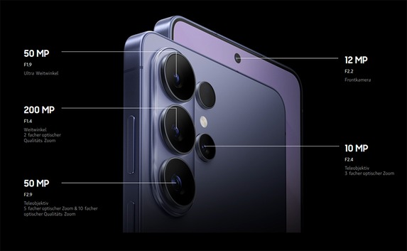 Während die Sensoren 1:1 vom Vorgängermodell übernommen wurden, hat sich Samsung bei zwei der vier Objektive für eine größere Blendenöffnung entschieden. Die Hauptkamera besitzt nun eine sehr hohe Lichtstärke von F1,4 (früher F1,7), die 5-fach-Telekamera eine Lichtstärke von F2,9 (früher F3,4). Bei der Ultraweitwinkelkamera ändert sich mit F1,9 dagegen nichts und auch das Objektiv der 3-fach-Telekamera bleibt bei F2,2. Keine Änderung gibt es zudem bei den Brennweiten. Auf Kleinbild umgerechnet liegen diese bei 13mm, 23mm, 70mm und 115mm. Da Samsung die Sensoren des S25 Ultra nutzt, bleiben zudem die Auflösungen von 50 Megapixel (UWW-Kamera), 200 Megapixel (Hauptkamera), 10 Megapixel (3-fach-Telekamera) und 50 Megapixel (3-fach-Telekamera) bestehen.