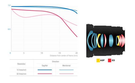 Die MTF-Charts und der optische Aufbau des Samyang 20mm F1,8 ED AS UMC: