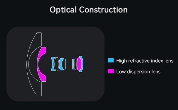 Alle Eingaben müssen beim 6mm F2,8 Zirkular-Fisheye von AstrHori manuell erfolgen, mit der Kamera kommuniziert die Festbrennweite nicht. Zum Fokussieren und zur Blendenwahl gibt es jeweils einen Einstellring, scharfstellen kann man ab einer Entfernung von acht Zentimetern. Bei der Blendenkonstruktion hat sich AstrHori für acht Lamellen sowie eine kleinste Öffnung von F16 entschieden. Der optische Aufbau des 6mm F2,8 Zirkular-Fisheye besteht aus zehn Linsen in acht Gruppen. Zwei Linsen mit niedriger Dispersion sowie vier HRI-Elemente erhöhen die Abbildungsleistung.
