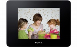 Als weiteres Modell präsentiert Sony den DPP-F800, der eine Kombination aus digitalen Bilderrahmen und Drucker darstellt, so dass die angezeigten Bilder auch direkt auf Papier ausgegeben werden können. Das Display ist 8,0 Zoll groß und bietet einen sichtbaren Bereich von 755 x 472 Pixel. Das Kontrastverhältnis beträgt 1:500, die Helligkeit 250 cd/m² und die Hintergrundbeleuchtung wird ebenfalls durch LEDs sichergestellt. Insgesamt können 262.144 Farben dargestellt werden. Als Druckverfahren kommt der Thermo-Sublimationsdruck mit einer Auflösung von 300 dpi und 16,7 Millionen Farben zum Einsatz. Zwei Papiergrößen - 101,6x152,4mm und 89x127mm - sind möglich, ein Papierschacht für 20 Blatt ist vorhanden. Die Druckzeit variiert je nach Größe und Herkunft der Bilddaten und beträgt im Schnitt etwa eine Minute pro Aufnahme. Es kann direkt von der Speicherkarte, dem internen Speicher oder über einen angeschlossenen Computer ausgedruckt werden. Das Kartenlesegerät unterstützt dabei die hauseigenen Memory Sticks sowie SD(HC) und xD-Speicherkarten. Zum Anschluss an den PC steht eine USB Schnittstelle zur Verfügung, USB-Speichersticks können dort allerdings nicht angeschlossen werden. Der Sony DPP-F800 wird mit einer unverbindlichen Preisempfehlung von 179,00 Euro im Fachhandel erhältlich sein.