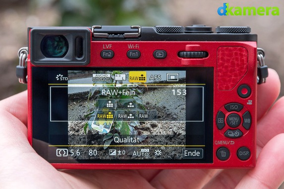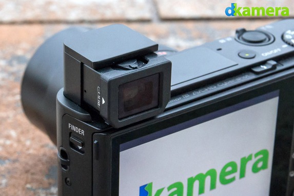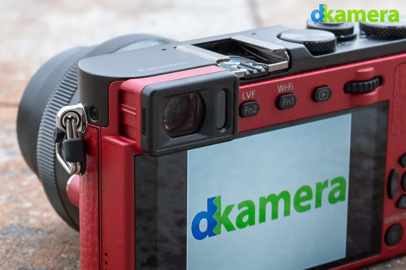 Der Sucher der GM5 wird nicht ein- und ausgefahren, er befindet sich fest in der linken oberen Ecke der Kamera. Mit 1,16 Millionen Subpixel ist er etwas geringer als der Sucher der RX100 III aufgelöst. Mit dem Sucher der Panasonic Lumix DMC-GX7 (Testbericht)