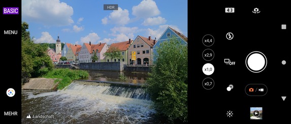 Beim Xperia 1 III gibt es eine Photo-Pro-App (mit zusätzlicher Videofunktion) und eine Cinema-Pro-App. Wer keine oder nur wenige Einstellungen vornehmen möchte, bleibt im „Basic“-Modus der Photo-Pro-App. Hier lassen sich unter anderem das Objektiv, die Helligkeit der Bilder oder der Auslösemodus (Einzelbild, Serienbild, Selbstauslöser) wählen. Grundsätzlich reicht dieser Modus für die Mehrheit aller Fotografen und Fotos vollkommen aus, für Videos gilt das ebenfalls. Im "Auto"-Modus gibt es noch ein paar mehr Optionen.