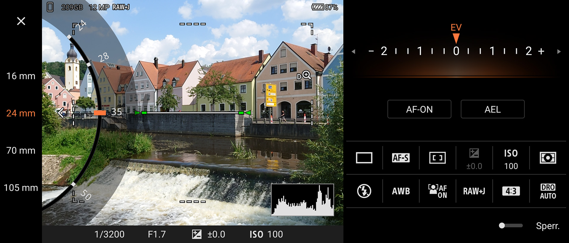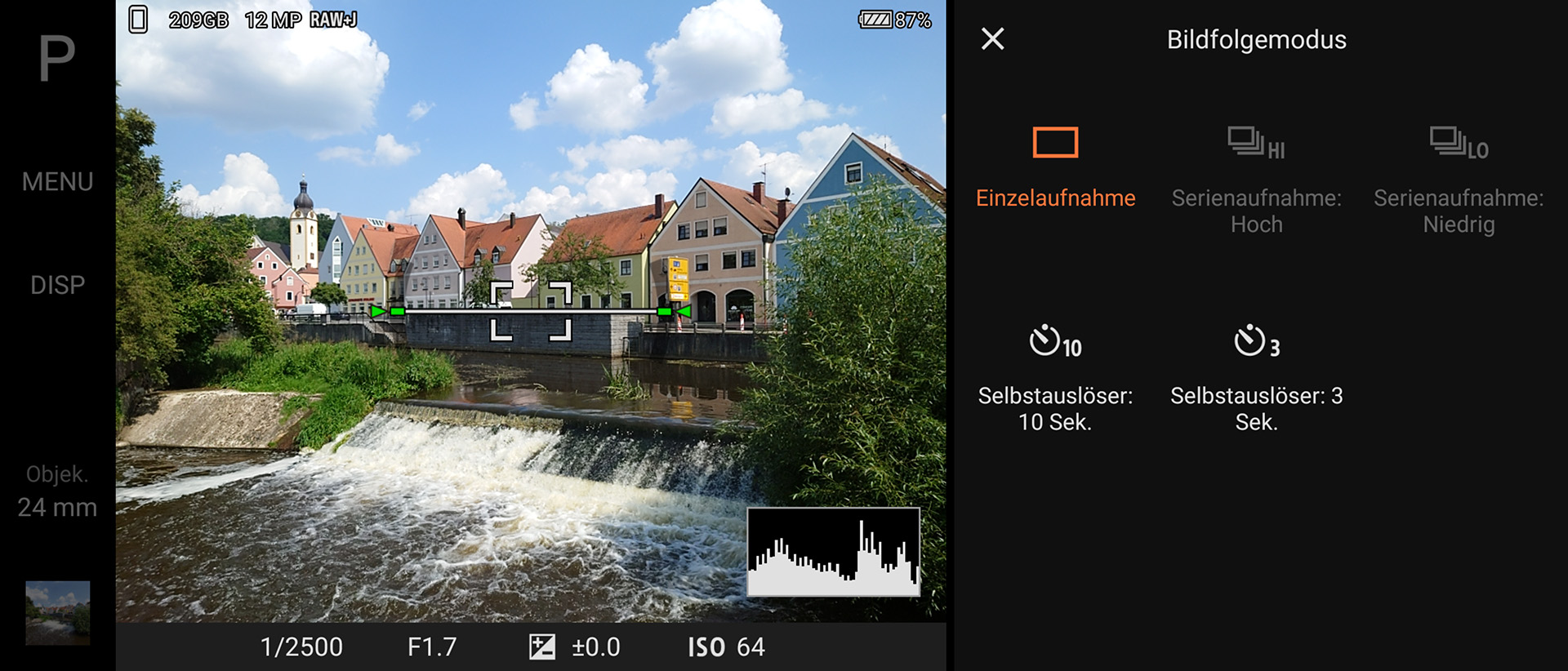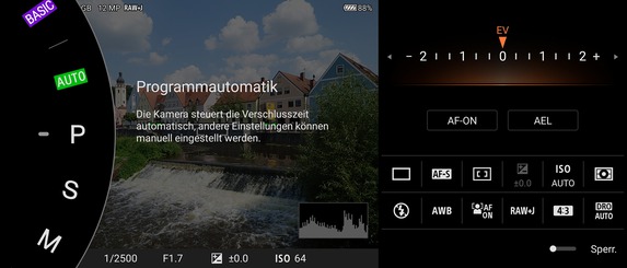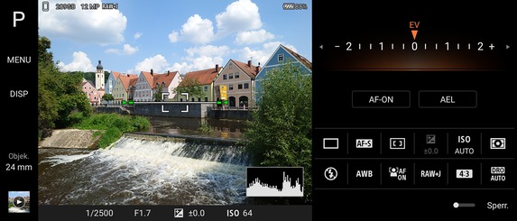 Einstellen lassen sich in der Photo-Pro-App unter anderem der Fokusmodus, die Fokusfeldoptionen, die Belichtungskorrektur oder auch der ISO-Wert. Des Weiteren sind Fotos in JPEG, RAW oder in beiden Formaten gleichzeitig möglich und lässt sich die Bildoptimierung beeinflussen. Kurz gesagt: Hier fehlt es auch ambitionierten Fotografen an nichts.