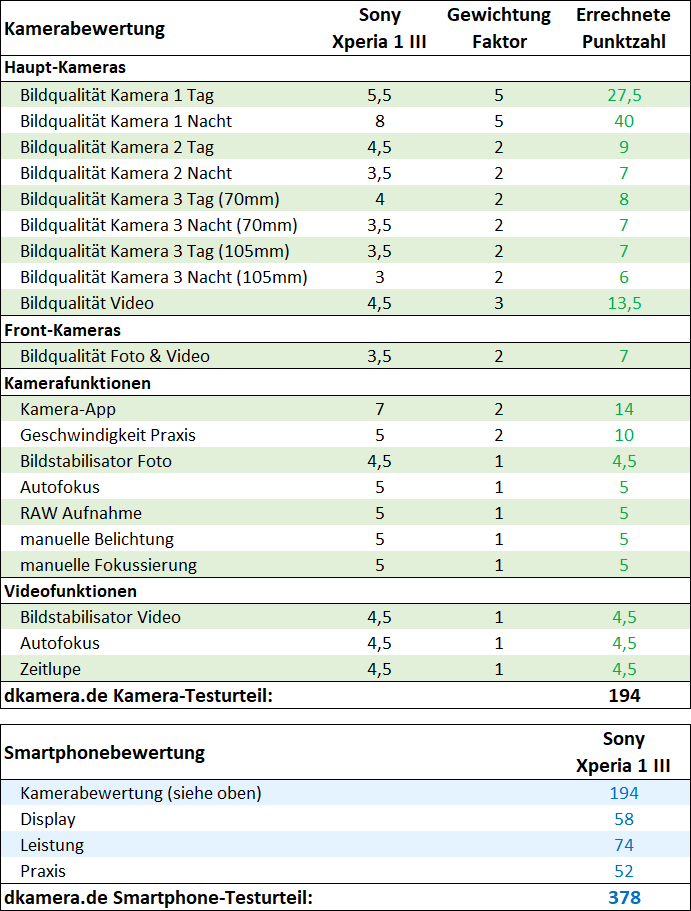 Bei der Kamera-Ausstattung hat sich Sony für ein klassisches Trio aus Ultraweitwinkel, Weitwinkel- und Telekamera entschieden. Das Teleobjektiv verfügt als Neuheit jedoch über zwei Brennweitenstellungen. Damit lassen sich Aufnahme-Situationen besser als mit einer Brennweite abdecken. In der Praxis sagt uns diese Konstruktion zu, die Bilder der zweiten Telebrennweite fallen allerdings nicht ganz so detailreich wie die der ersten Telebrennweite aus. Das könnte Sony noch verbessern. Die Ultraweitwinkelkamera liefert bei Tag sehr gute und bei Nacht ordentliche Bilder, die Hauptkamera bei allen Aufnahmesituationen sehr gute bis exzellente Fotos. Im Gegensatz zu einigen Modellen der Konkurrenz weiß zudem auch die natürliche Wiedergabe zu gefallen.